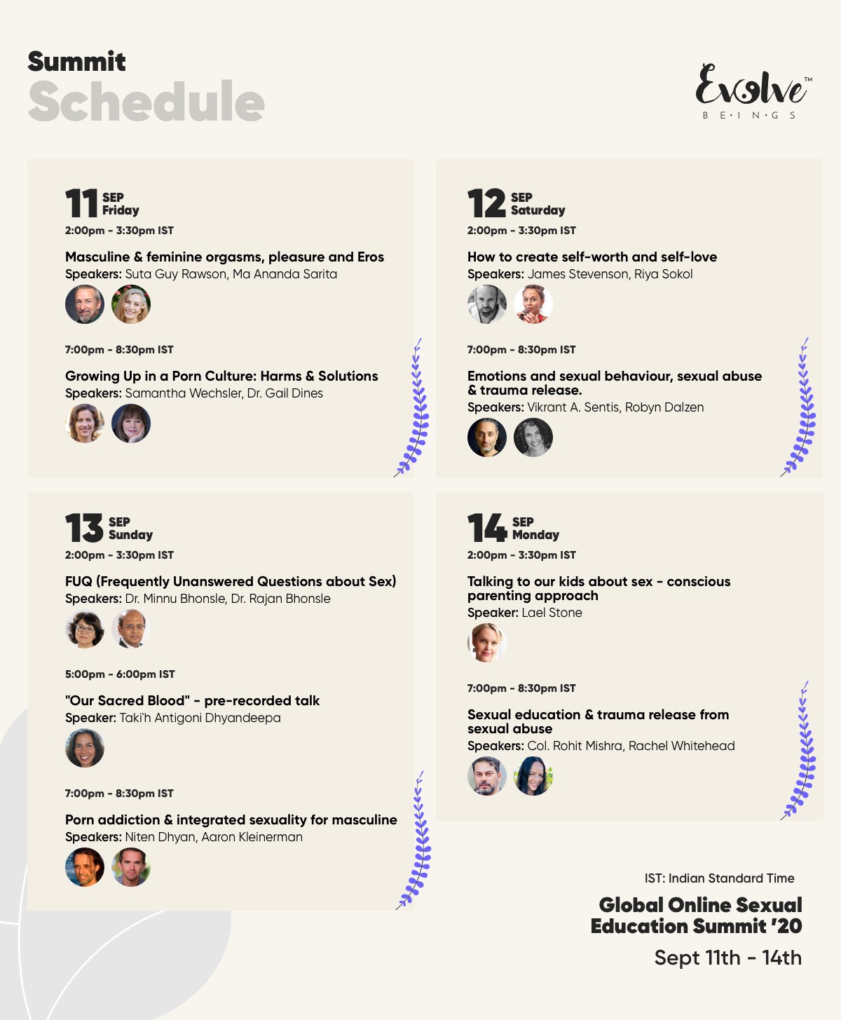 Learn from experienced sexual therapists, trauma release experts, sexologists, parenting experts, counsellors, tantra therapists, and psychologists.